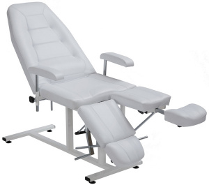 Стильное и удобное кресло для осуществления различных педикюрных процедур и сеансов ПК-03 на каркасе белого цвета, сделанного из прочного металла. Имеет возможность механической регулировки нижней части изделия (ноги) по длине и высоте и возможность регулировать угол наклона сидения с помощью гидравлики.
